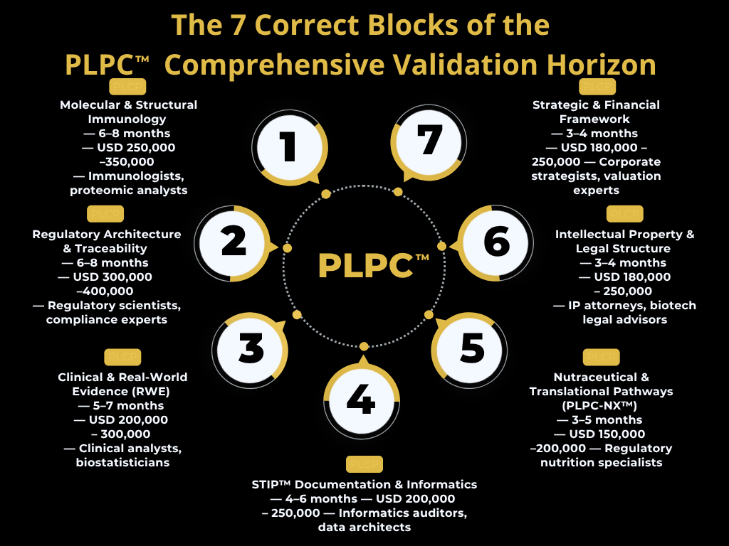NOTE: PLPC™️ maintains advanced alignment and collaborative engagements with Veristat, Freyr, Freshfields, WilmerHale, Al Tamimi, and MNS Consulting, forming an institutional network that ensures regulatory coherence, IP defensibility, and sovereign-level deployment feasibility.